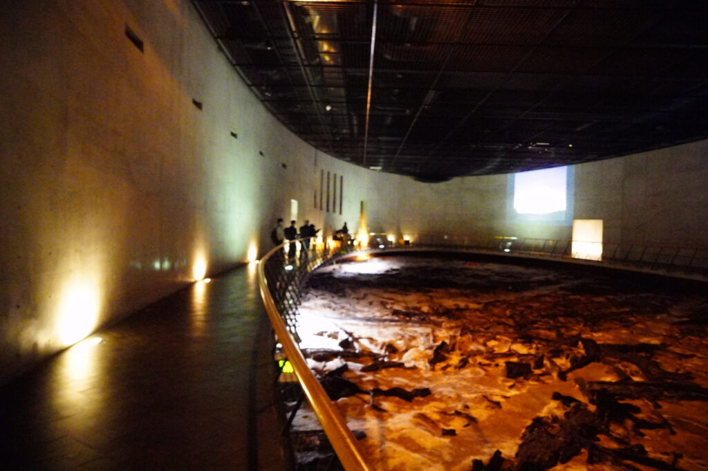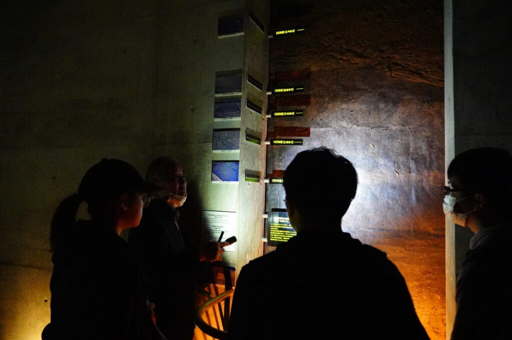 暗い2万年前の森の中にタイムスリップすると、そこは旧石器時代の仙台の実際の姿。小学校建設予定地の事前発掘で見つかった古代の森、その中から発見された焚火跡でした。2万年前の古代の生活から現代までの地層標本では稲作が始まったころの地層も確認できました。ボランティアガイドさんや館長先生から直接地底の森ミュージアムの話を伺い、実物を観察したことで大変感激しました。