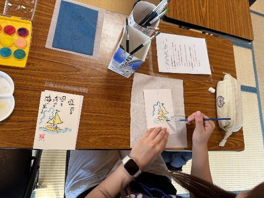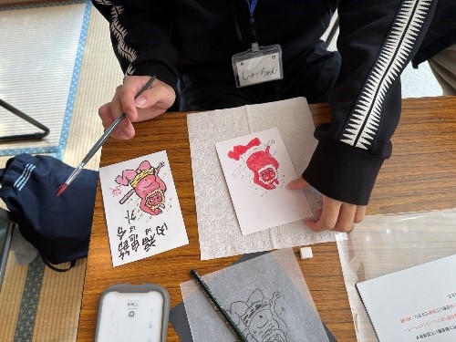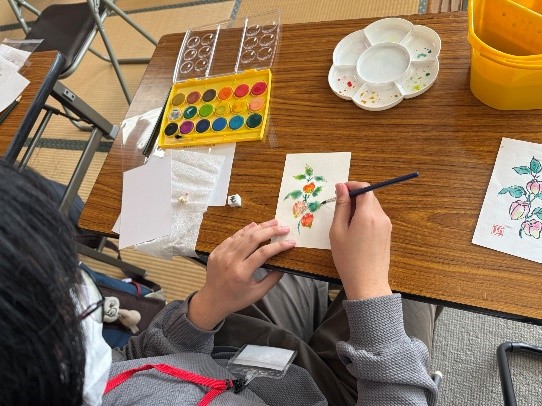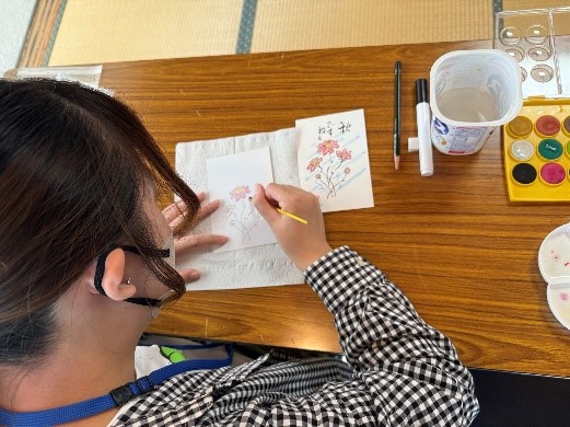 令和7年10月8日(水)毎年恒例となっているカトレアクラブ主催の「絵手紙教室」が館老人憩いの家で開かれ、キャリア開発総合学科の地域コミュニティの「世代間交流の理論と実践Ⅰ.Ⅱ」を履修している1.2年生が参加しました。
