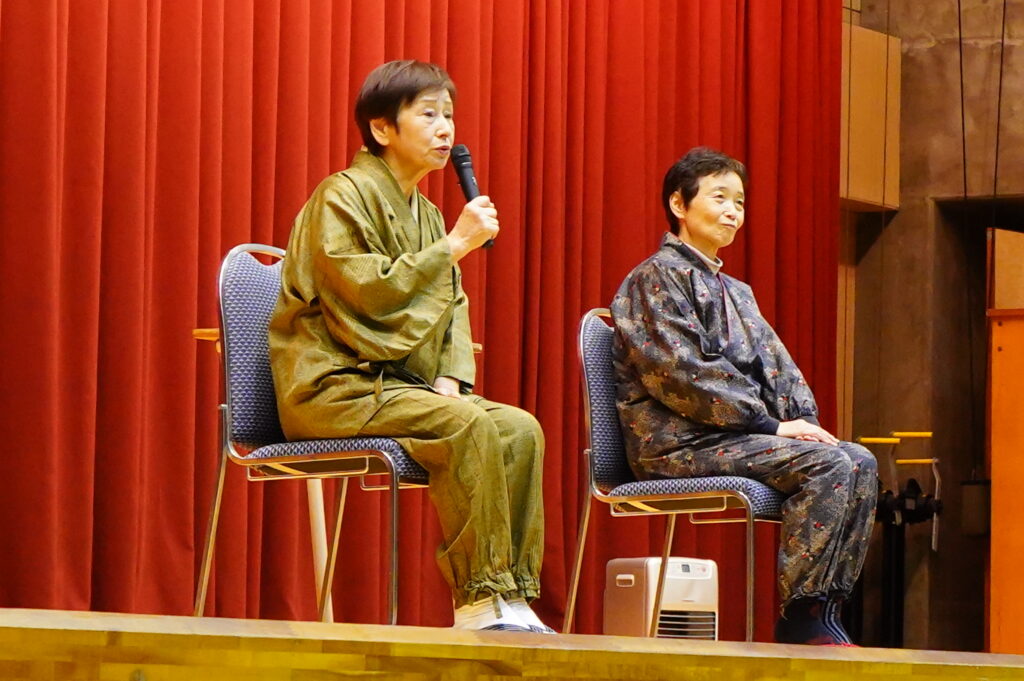 国営みちのく杜の湖畔公園ふるさと村の「民話の会」の語り部である菅井清子さんと佐藤信子さんのお二人による「民話の素話(すばなし)」を拝聴しました。東北各地に伝わる民話や昔ばなしに耳を傾けるうちに、自然とお話の世界に引き込まれていきました。