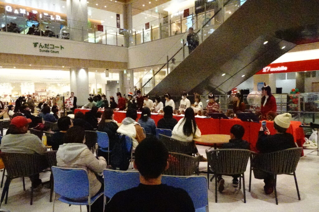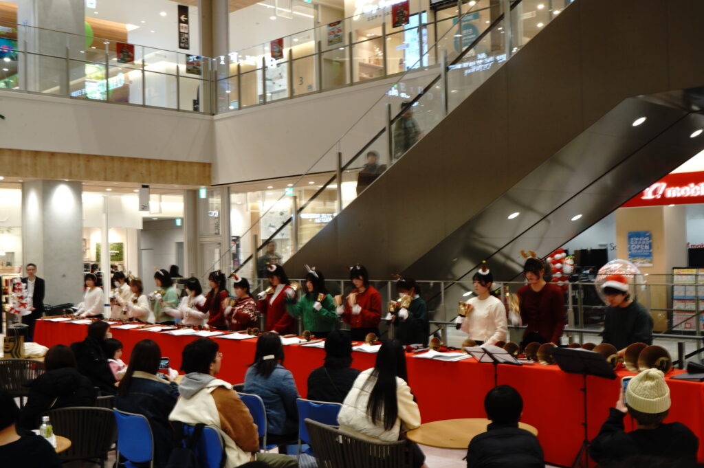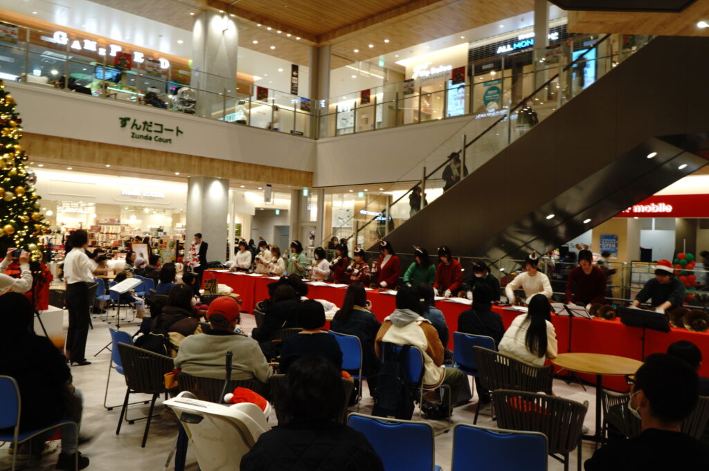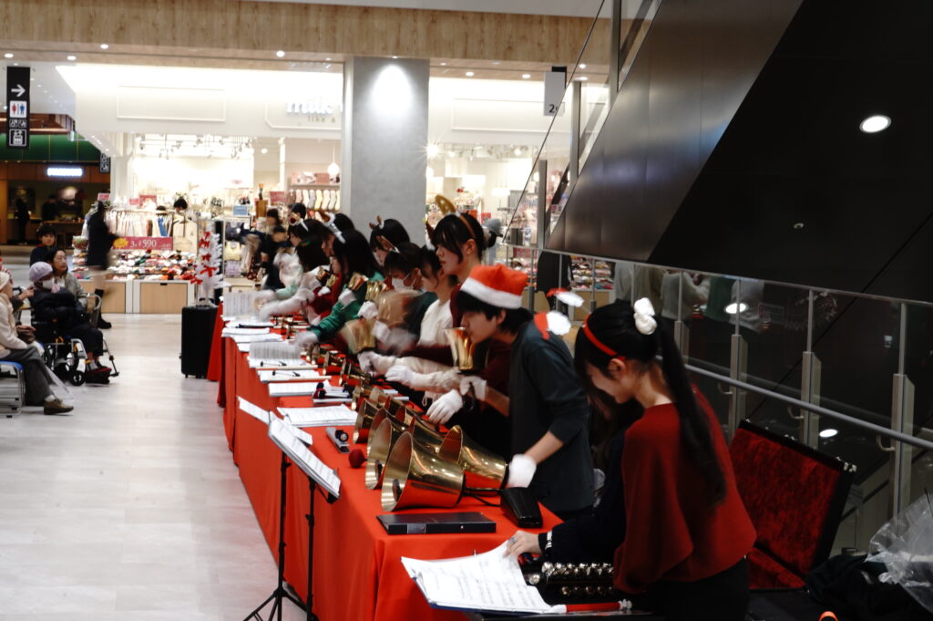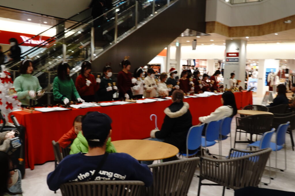 12月24日(水)、今年、上杉に開店したイオンモール仙台上杉の2階ずんだコートにてハンドベルコンサートを開催しました。
