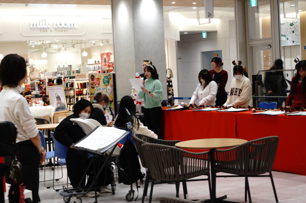 この日のために学生たちは、忙しい時間を割いて練習を重ね、ディズニーメロディー、リトルマーメイドやクリスマスにちなんだ曲などを演奏することができ、お買い物で訪れた大勢のお客様にも楽しんでいただけたようです♬