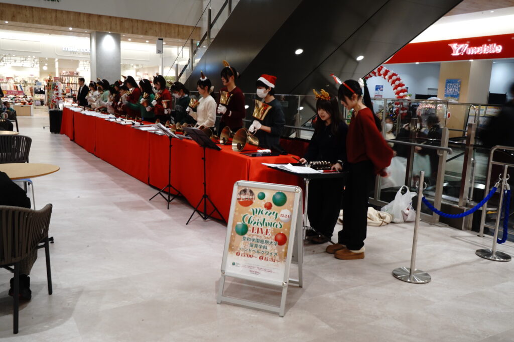 Merry Christmas LIVE の第3stage 保育学科 ハンドベルクワイヤの1年生(岩淵ゼミ生)によるコンサートが開催されました。