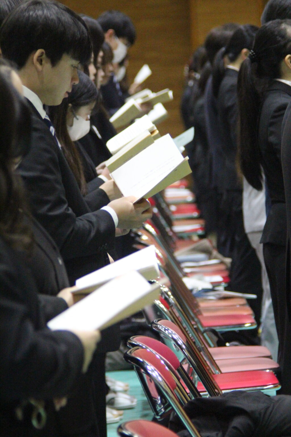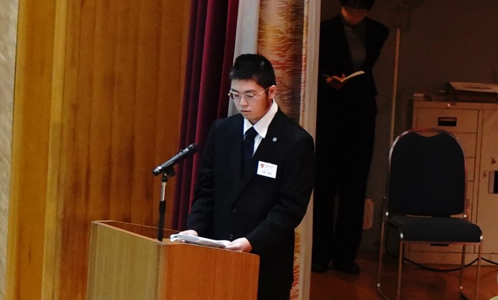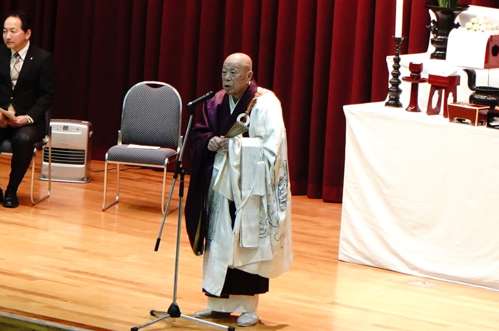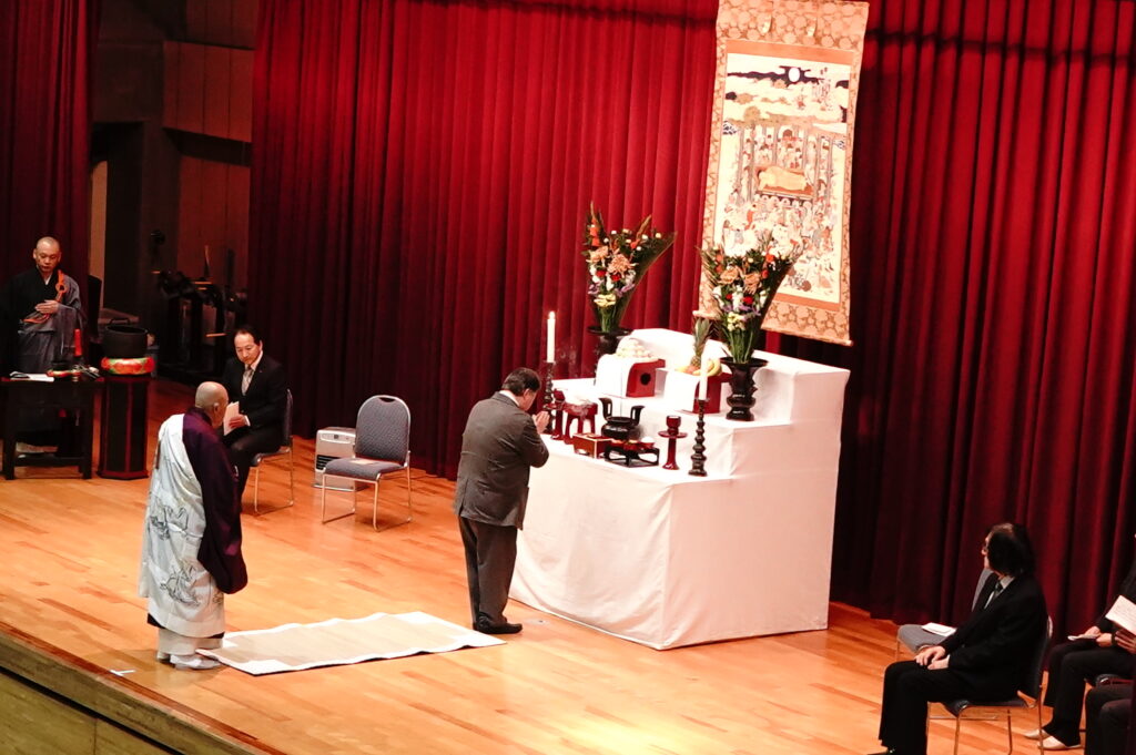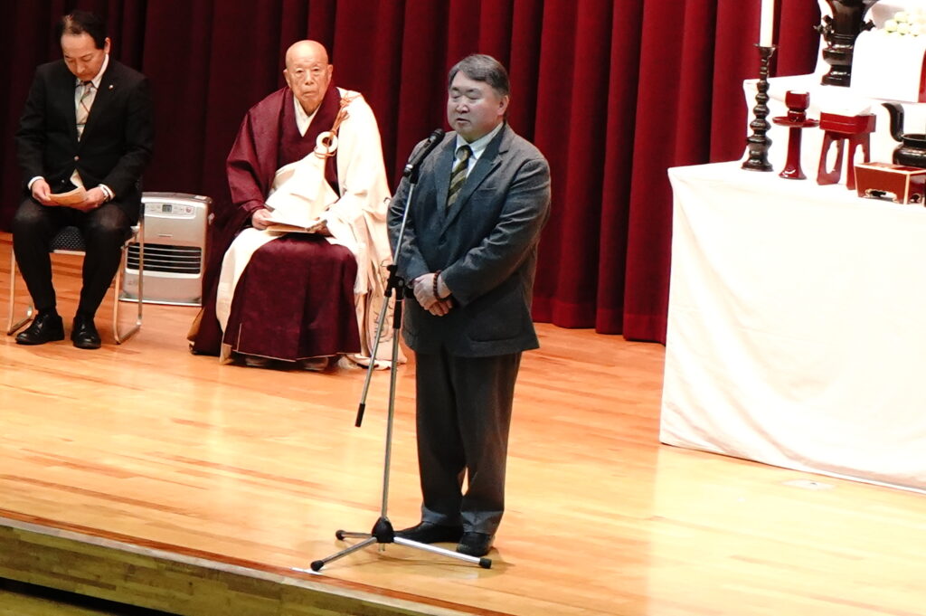 2026年1月14日 (水)、今年度最後となる仏教行事である「涅槃会」を開催しました。お釈迦さまが亡くなって安らかな境地「涅槃」に入られたことを偲ぶ行事です。式典では仏教青年会委員の学生が司会を行い、仏教青年会委員の学生が「献灯の舞」を披露した後に、導師の鎌田文惠学園長が読経を行い、三浦学長の焼香に合わせて学生と教職員が一斉に合掌、礼拝をしました。学園長による法話のあと、来賓としておいでいただいた伊澤勝平理事長よりご挨拶をいただきました。