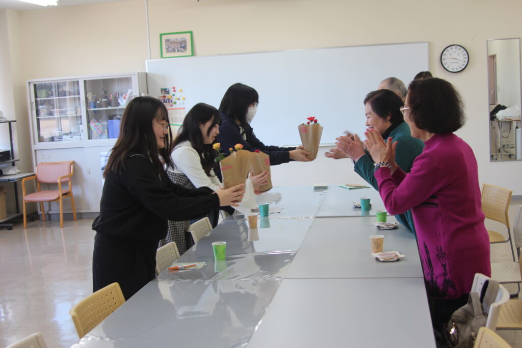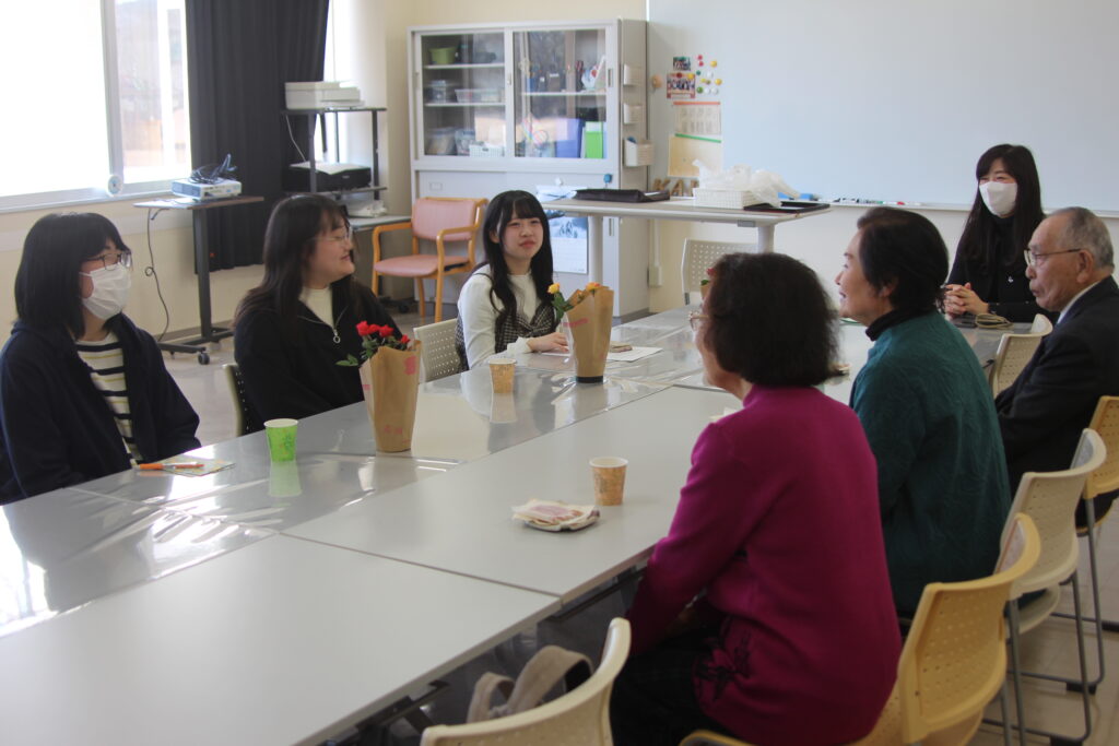 令和8年2月13日(金) に仙台市泉区館地区の高齢者コミュニティー「カトレアクラブ」の皆さんが、「地域サポーターズ聖笑(※)」の2年生の卒業を祝して本学に激励に訪れました。