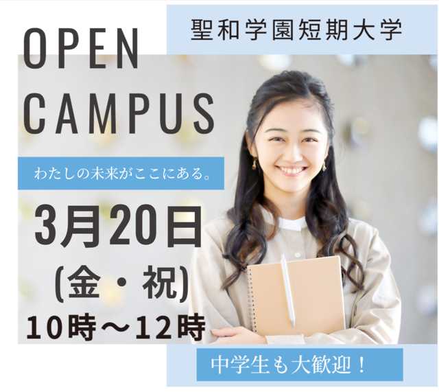 実際に短大の様子をご覧いただき、将来の進路選択のため、高校の進路先を決める参考にするため、中学生の皆さんもオープンキャンパスに参加してみませんか!