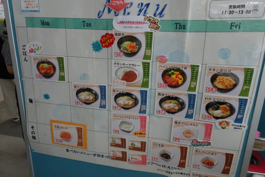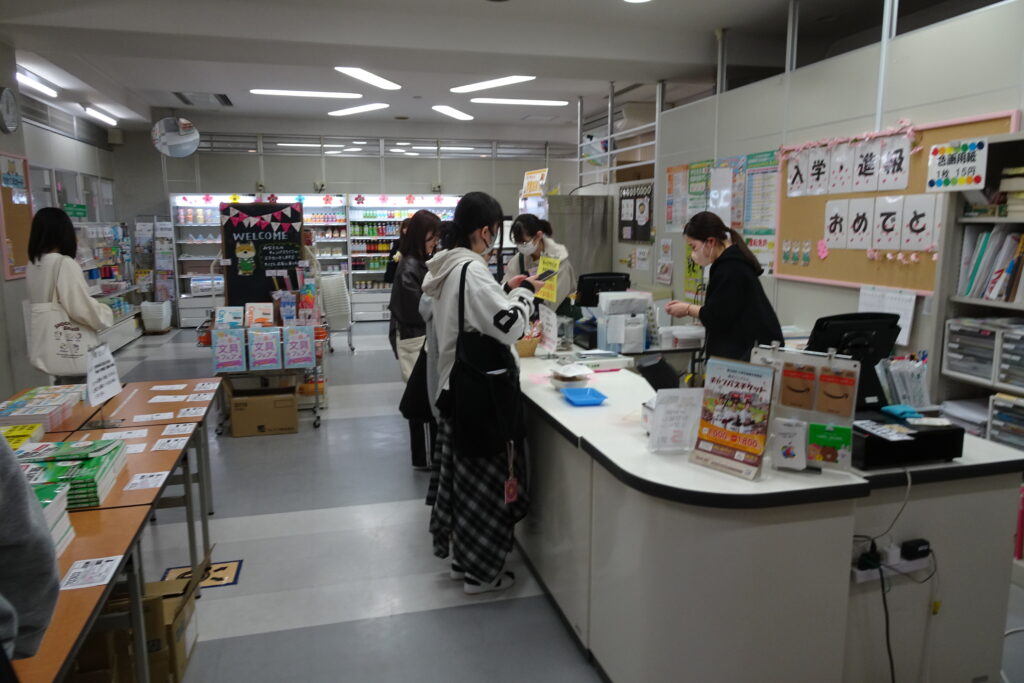 生協は学用品や参考書、軽食、ドリンクなど品揃えが豊富です。アパートや自動車学校の斡旋もしています。また、生協組合員になると教科書含む書籍が割引されます。