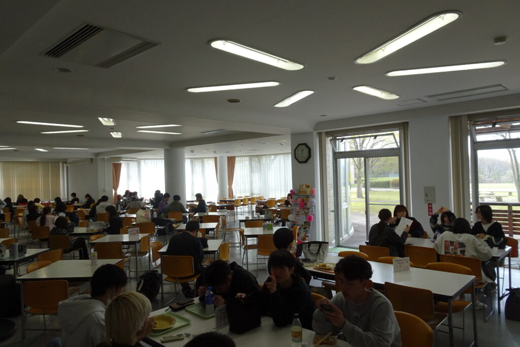 学生が昼食時に憩いの場として利用しています。晴れた日はきれいな山々を見ながらデッキでランチ。サラタデーやスープデーもあり、バラエティ豊かなメニューがひろっています。